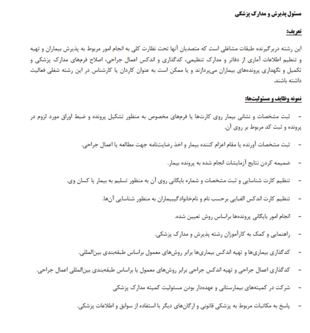 مسئول واحد مدارک پزشکی |